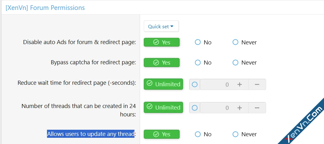 This permission inherits the features of: Uptop, Update Attachments, Thread Suffix, Optimal MetaData, Add Thread Detail.