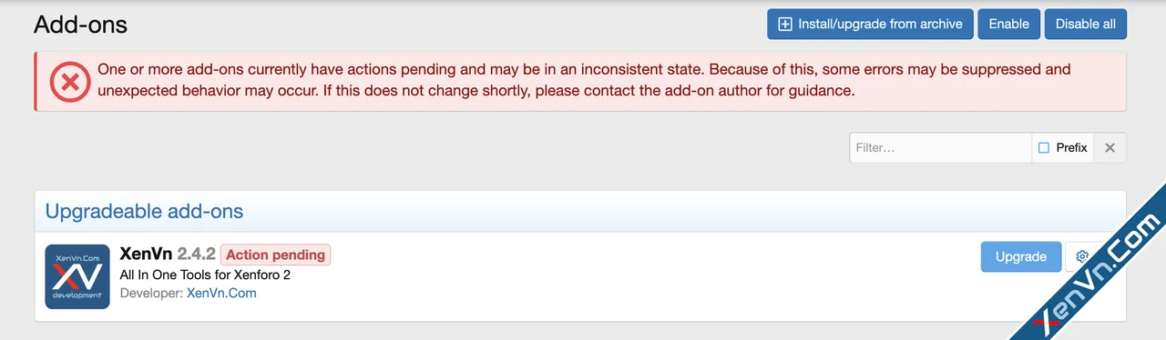 I tried to update XenVn from 2.4.2 to the latest version (XenVn-2.5.0-public), but I got this error